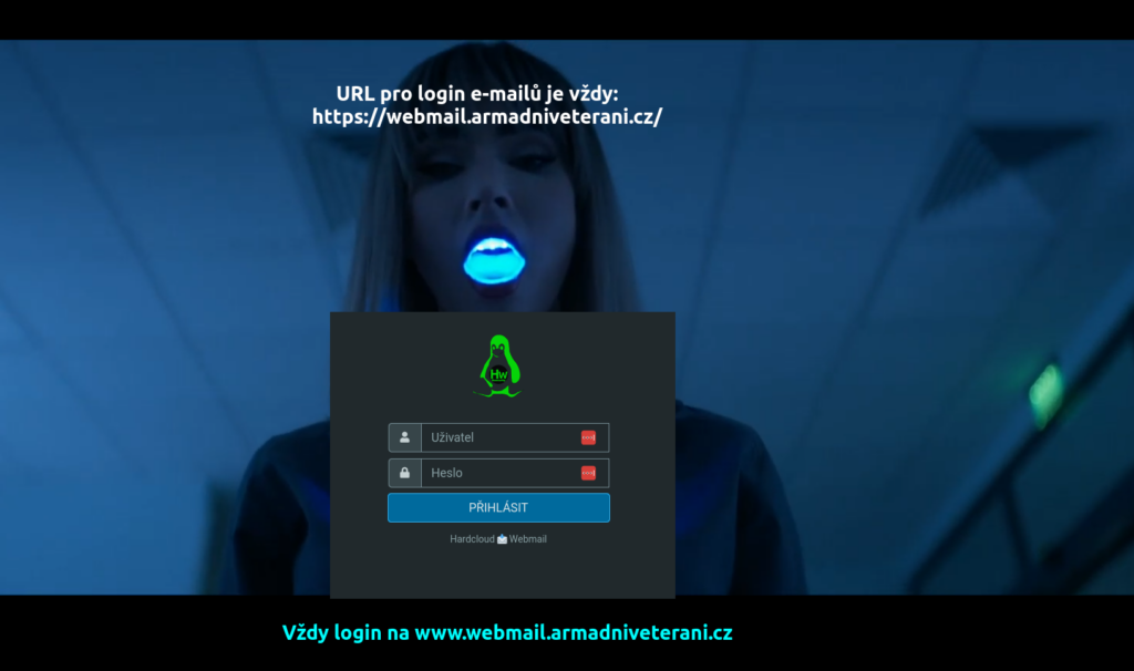 E-mailové schránky jsou vždy na www.webmail.armadniveterani.cz nebo také https://webmail.armadniveterani.cz